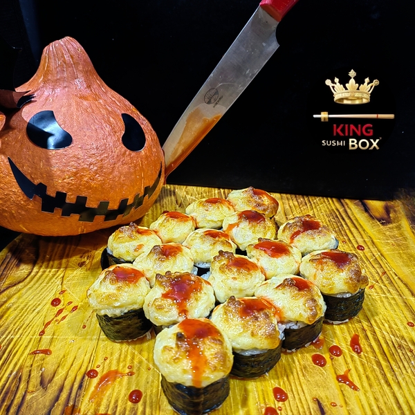 Состав: курица, омлет, сырный замес, рис, нори, фирменный соус.