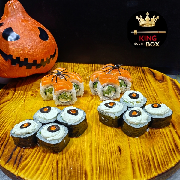 Состав: филадельфия 1/2, унаги онигара 1/2, калифорния 1/2, каппа маки с сыром.