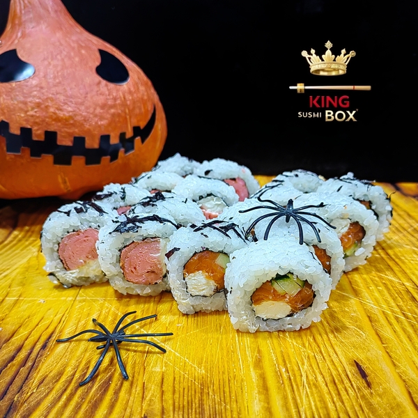 Состав: лосось, нори, сыр сливочный, рис, соус спайси.